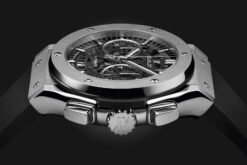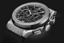The watch’s unique design is accentuated by its intricate skeleton dial, which not only offers a glimpse into its mechanics but also adds a modern flair. The understated elegance and versatility of the Hublot Classic Fusion Aerofusion Titanium make it suitable for various occasions, whether formal or casual.